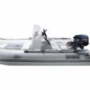 Лодка РИБ Адмирал 410 подойдет под мотор мощностью до 40 л.с. Поставляется в комплекте с носовым и кормовым рундуками, в которых можно разместить необходимое снаряжение, а также с удобной консолью, позволяющей установить штурвал для управления судном и включающей в себя дополнительное место для пассажиров на борту. Вместимость — 5 человек. Корпус модели 410 полностью выполнен из стеклопластика, баллоны лодки надувные и разделены на 5 герметичных отсеков, повышающих безопасность и плавучесть судна.