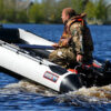 Серия надувных лодок «А ЛАЙТ» — универсальные лодки для рыбалки на разных водоемах, в том числе больших озерах и реках. Благодаря большому диаметру баллона, лодки этой серии получили достаточный запас плавучести и мореходности, а четко выверенное надувное безкилевое стационарное надувное дно позволило достичь максимальных скоростных характеристик даже под моторами малой мощности и максимальной остойчивости. Но, основным преимуществом надувных лодок серии «А Лайт», конечно же является ВЕС. Лодка Хантер 335 А Лайт обладая не малыми габаритами весит всего 25 кг. без навесного оборудования, вес полного комплекта в сумке составляет 36 кг.